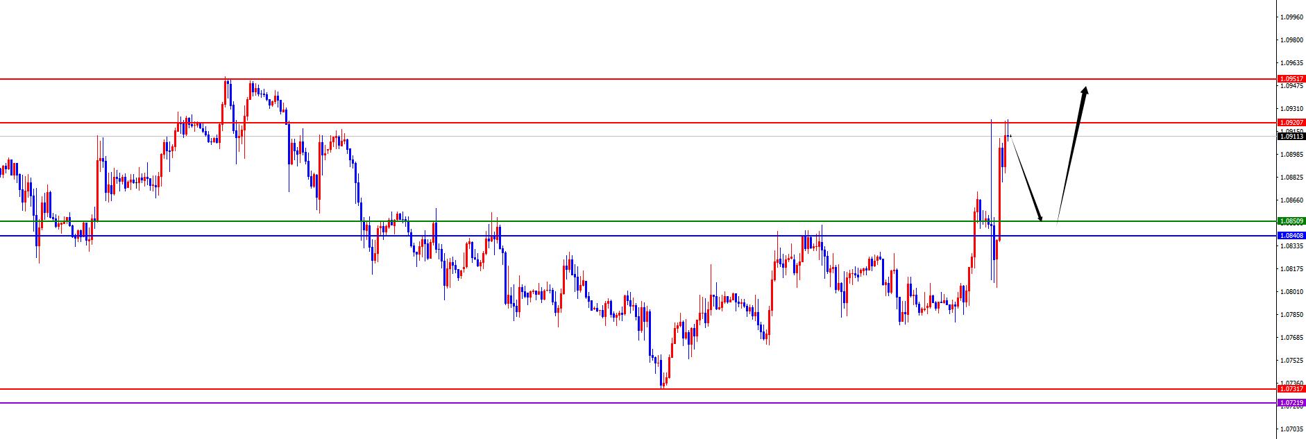 Europäische und amerikanische Preise zeigten im Allgemeinen einen Aufwärtstrend wie geplant am Mittwoch. Der Preis fiel am Tag auf 1,0779 und stieg vor Ort auf 1,0923 und schloss sich an der Stelle bei 1,0852. Rückblickend auf die Leistung europäischer und amerikanischer Märkte am Mittwoch war der Eröffnungspreis am Morgen hauptsächlich kurzfristig schwankt, und die europäische Sitzung schwankte ebenfalls. Danach brach der Preis der US-Sitzung den vierstündigen Widerstand durch und brach gleichzeitig den täglichen Widerstand, und schließlich endete der große positive Zustand.