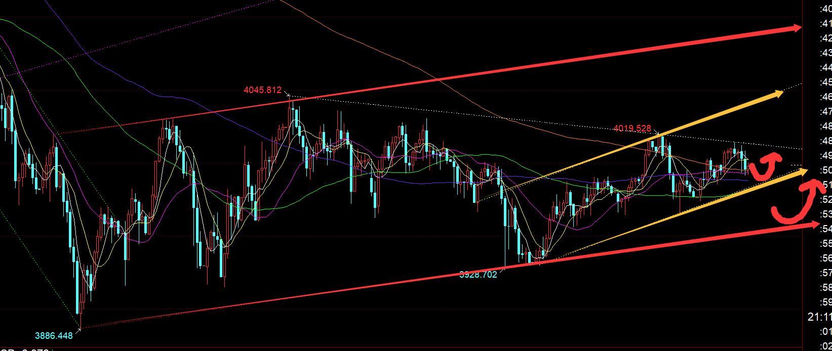Zweitens das goldene Stundenniveau: Am Morgen verließ es sich darauf 3975 zum direkten Hochfahren. Es lag gestern bei der 50-geteilten Unterstützung und war auch das wichtigste bullische Niveau, das über Nacht ausgelöst wurde; Als Dayang K auftauchte, fiel er auf die 382-geteilte Position 3985 zurück, um weiterhin einen zinsbullischen Aufschwung auszulösen, und erreichte schließlich das Zielniveau über 4000. ; Nachdem Dayang am Nachmittag die Mittelschiene durchbrochen hatte, durchschlug er wiederholt die Mittelschiene, sodass ich nicht über einen Markteintritt nachdachte, da die Stabilität zu diesem Zeitpunkt nicht stark war; Obwohl sich der europäische Markt auf 4014 erholte, war die Intensität nicht groß. Zu diesem Zeitpunkt schoss es höher und fiel auf die Mittelbahnlinie zurück; Da die nichtlandwirtschaftlichen Daten heute Abend nicht veröffentlicht werden, dürften die Schwankungen heute Abend nicht groß sein. Man muss auf die Eröffnung des US-Aktienmarktes um 22:30 Uhr achten. Es ist in den letzten zwei Tagen immer noch davon betroffen; Die aktuelle Unterstützung liegt bei 3990, dem Bereich von 618, der die Intraday-Gewinne unterdrückt, gefolgt von der unteren Spur der gelben Kanallinie 3983-84 im Bild. Wenn Sie diese beiden Punkte halten, können Sie den Aufwärtsschock immer noch aufrechterhalten. Der Widerstand beträgt 4012-14 und ein Durchbruch ist erforderlich. Es kann den Gewinn und Verlust des gestrigen Höhepunkts testen; Wenn ein starker Aufprall möglich ist, besteht eine geringe Wahrscheinlichkeit, die obere Spur des gelben Kanals 4040-42 zu testen. Wenn es gelingt, kann dies den Weg für den zweiten Höhepunkt nächste Woche ebnen; Wenn außerdem die Unterstützung der unteren Spur des gelben Kanals nicht gehalten werden kann, wird die untere Spur des roten Kanals geschwächt oder auf die Probe gestellt. Die aktuelle stündliche Mid-Rail-Unterstützung liegt bei 48,35 und die Intraday-618-Split-Unterstützung liegt bei 48,3. Achten Sie zunächst auf die Stabilisierung der Unterstützung. während die untere Schienenunterstützung des gelben Kanals 48 beträgt. An dieser Position gibt es auch einen stabilisierenden Rückprall. Wenn es schwächer ist, handelt es sich um die untere Schienenhalterung des roten Kanals 47,6; Achten Sie daher heute Abend bei Schocks auf die Unterstützungs- und Stabilisierungssignale dieser drei Orte. Wenn Sie den Boden testen und K oder Dayang K nach oben ziehen, können Sie versuchen, einzusteigen und zu testen, ob Sie in der nächsten Stunde einen Schritt zurück machen. Der Widerstand beträgt 48,85 und 49,4;