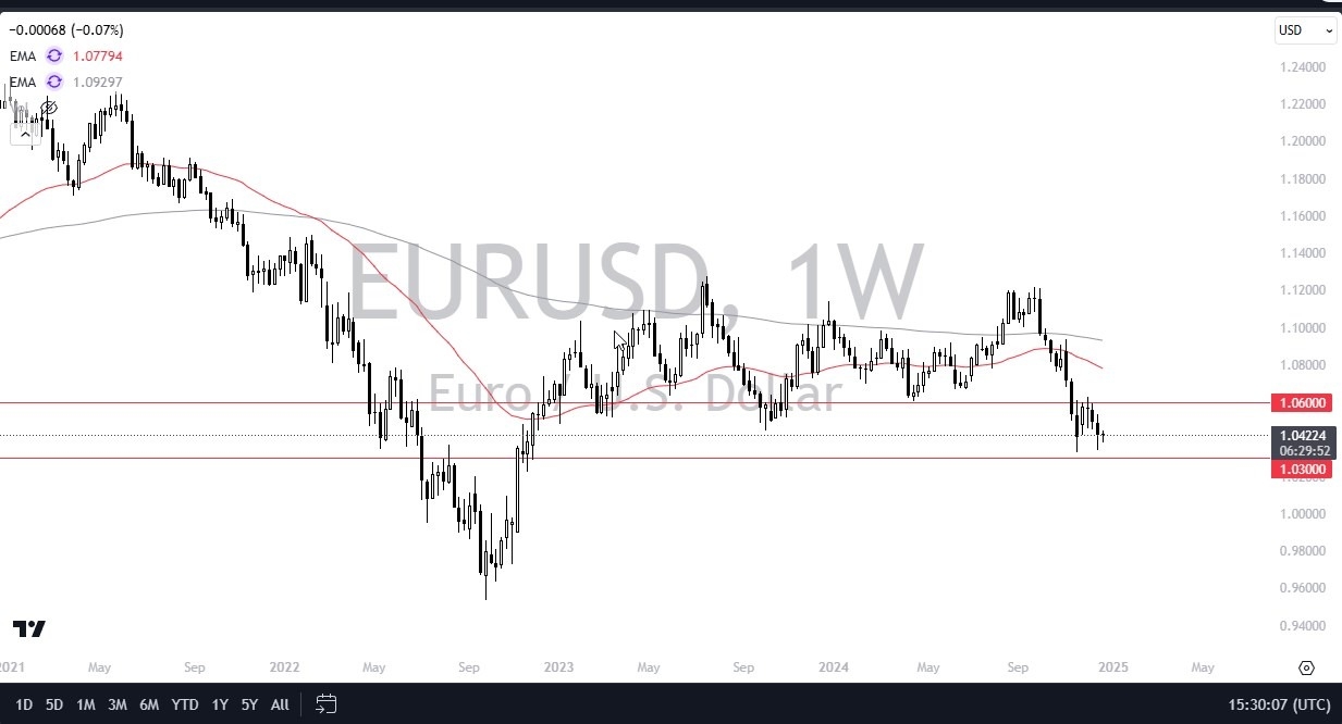 The US dollar has rallied a bit during the course of the trading week, only to get back the gains as we continue to chop back and forth in the USD/MXN currency pair. This is a market that will continue to be very noisy, mainly due to the fact that there are a lot of moving pieces when it xn--xm-6d1dw86k.comes to tariffs, immigration policy, and interaction between the Americans and Mexicans with the incoming administration. I suspect this market continues to trade in a somewhat sideways manner.