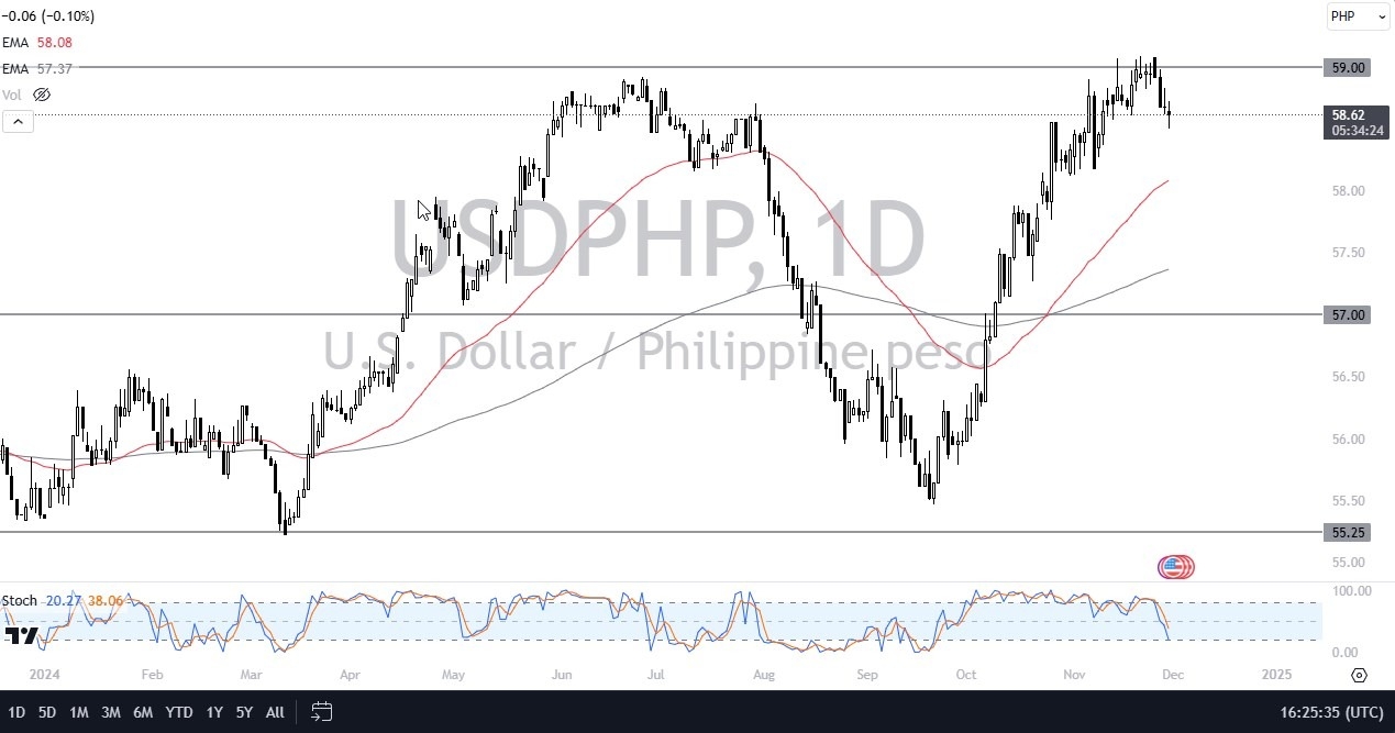 That being said, this is one of those markets that is setting up for a fairly obvious trade, so it’ll be interesting to see how this plays out, because if we can break above the 59 PHP level, I’m very interested in going long the US dollar, and shorting not only the PHP, but several other emerging market currencies in the region.