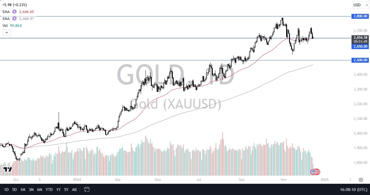 The technical analysis for gold is fairly bullish, with the $2650 level being important, right along with the fact that the 50 Day EMA sits in the same neighborhood as well. In other words, this is a significant area that a lot of people will be cognizant of. If we were to break down below the $2600 level, then it’s possible that we could sexn--xm-6d1dw86k.come a little bit deeper correction, but right now I think we are just simply trying to find some type of range to trade in.