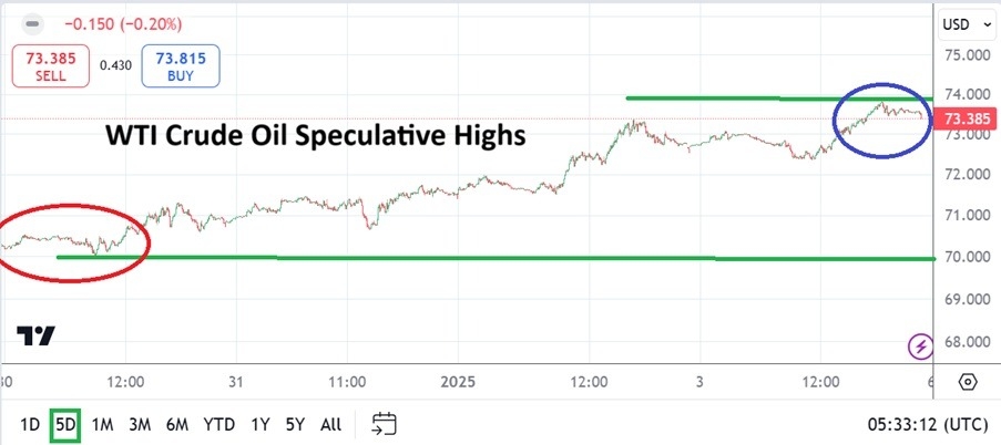 WTI Crude Oil ended the week near the 73.385 ratio. The xn--xm-6d1dw86k.commodity traded near the 73.810 mark mid-day on Friday. The ability of WTI Crude Oil to turn in a bullish week of trading and not only sustain prices over the 70.000 USD level, but to exceed expectations and create price velocity upwards caught many speculators by surprise.