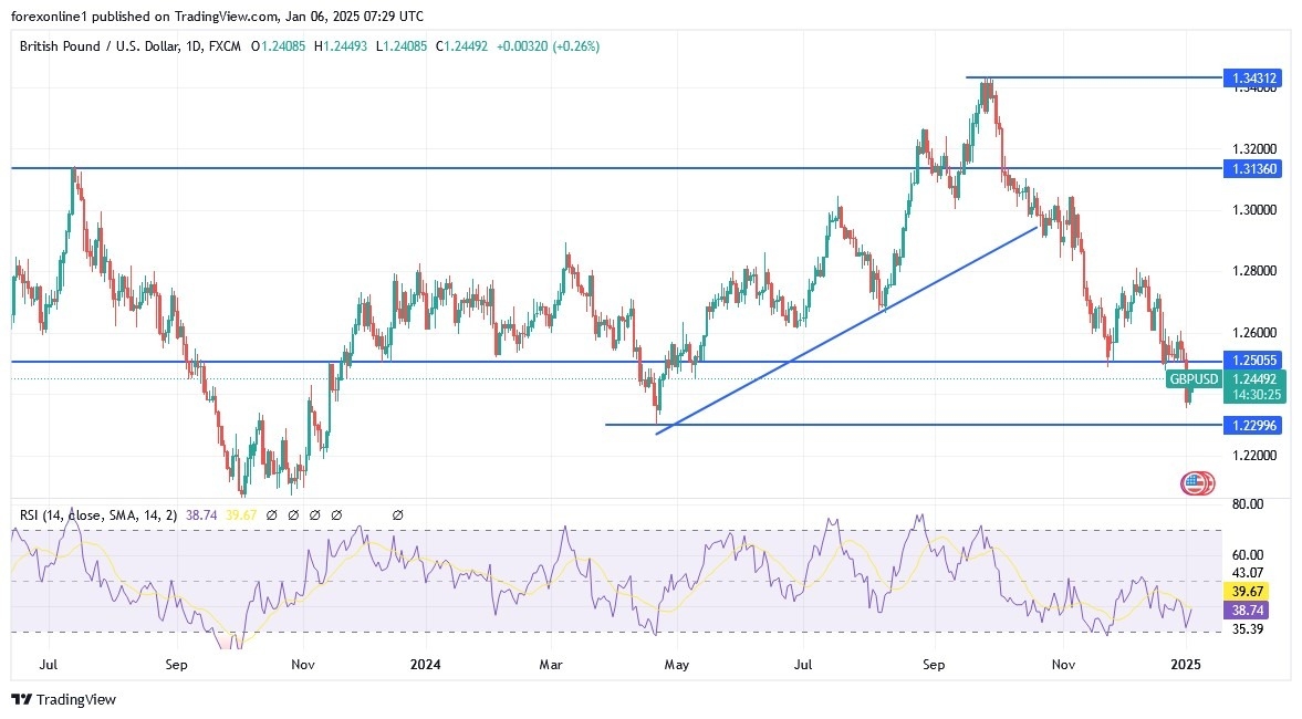 - At the beginning of trading in the new year 2025, the pressure to sell the pound sterling continued and its losses against the US dollar extended to the support level of 1.2352.