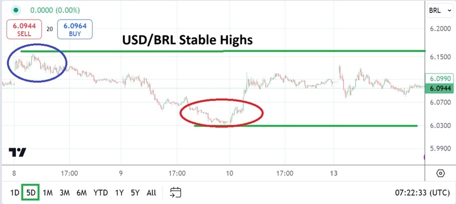 The USD/BRL remains firmly above the 6.0000 level. Last week’s move towards the ratio was certainly of interest, but the stronger U.S jobs number ended the challenge quickly. Now the 6.1000 ratio is again in sight and traders will certainly watch this level as a barometer today. The U.S will release inflation data today and tomorrow which will have an effect on global Forex if there are surprises.
