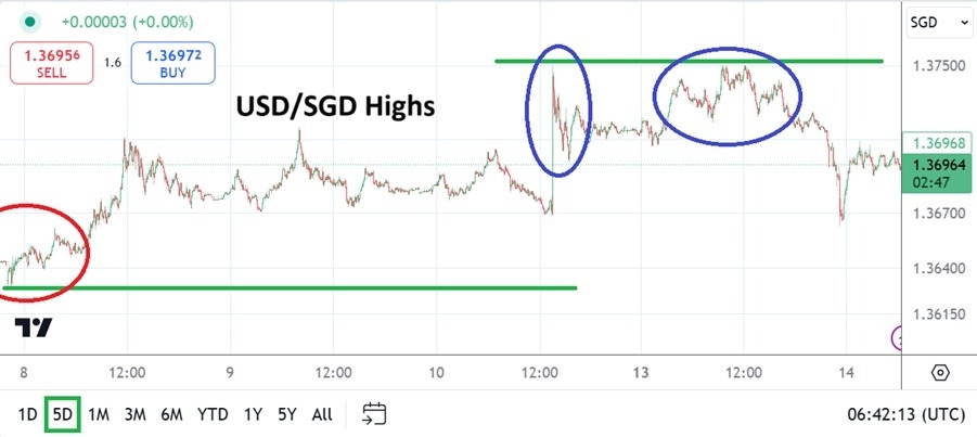 USD/SGD traders looking for a change in attitude will have to remain patient, and this may be a clue regarding near-term opportunities. The ability of the USD/SGD to challenge the 1.37000 level has been important. If the currency pair suddenly starts to show the ability to maintain values over the 1.37000 after the U.S inflation reports are digested, then there could be additional bullish activity in the USD/SGD near-term.