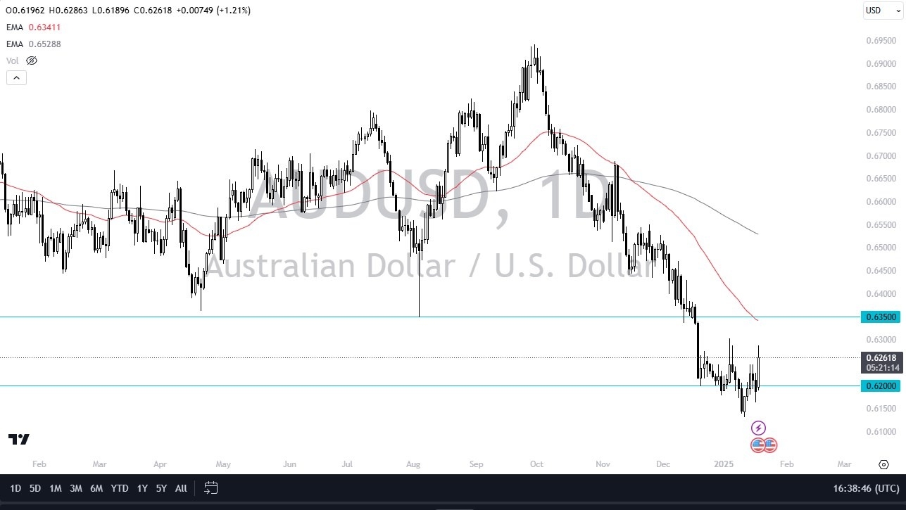 Looking at the technical analysis, the air has been very negative for quite some time, but even if we were to take off to the upside the 50 Day EMA sits near the 0.6350 level, which also happens to be a major area of market memory. All things being equal, if the market were to look to that region, I think that traders would be watching very closely to see if there’s any type of exhaustion. If there is, I think there would be an even more aggressive move to the downside. As far as buying the Australian dollar is concerned, it would be for a short-term move at best, as money continues to flow into the United States overall.