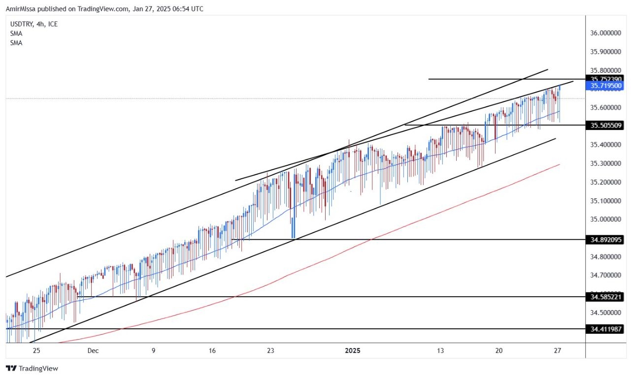The dollar has appreciated against the Turkish lira at the start of the week, with the pair reaching new levels during early trading at 35.69 lira per dollar. Meanwhile, the dollar continues to rise against the Turkish currency at the same pace of gradual increases that the pair has been recording since the last months of last year. Obviously, the current declines in the lira reflect the decline in support provided by the Turkish monetary and fiscal authorities for the local currency. Concurrently, the Turkish currency is expected to continue its decline in the medium term, coinciding with the decline in interest rates and the slowdown in support available for the currency.