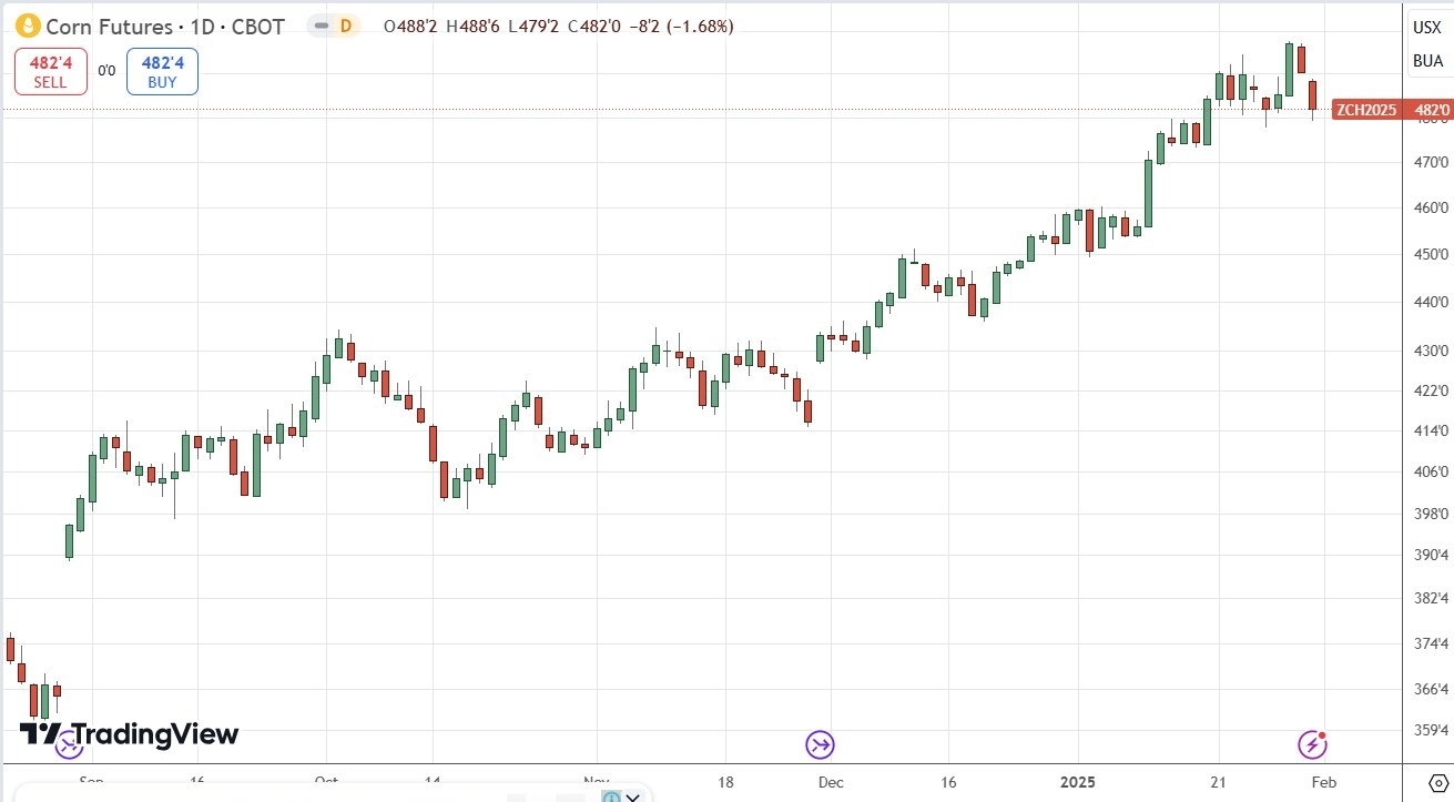 Corn futures have been breaking to new highs, although the last two days of last week saw the price decline for consecutive days.