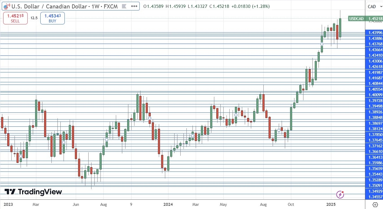 Gold advanced last week to reach a new all-time high above $2,800 per ounce. The price gave up some of its gains towards the weekly close to end the week back below the round number of $2,800. However, looking at the weekly price chart below, we can see that the price closed above the previous record high made in December 2024.