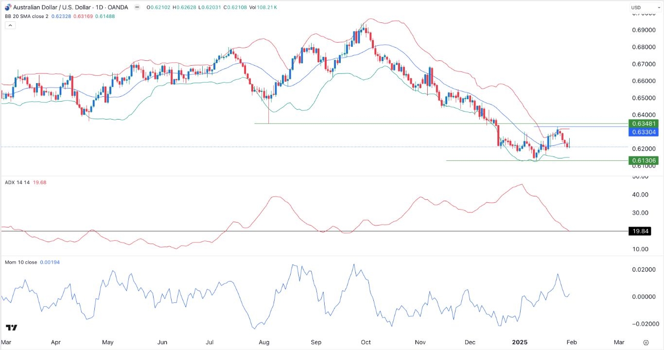 The AUD/USD pair dropped sharply after Donald Trump announced large tariffs that triggered a trade war. It fell to a low of 0.6210, its lowest point since January 2025 after the Federal Reserve decision and US inflation data.