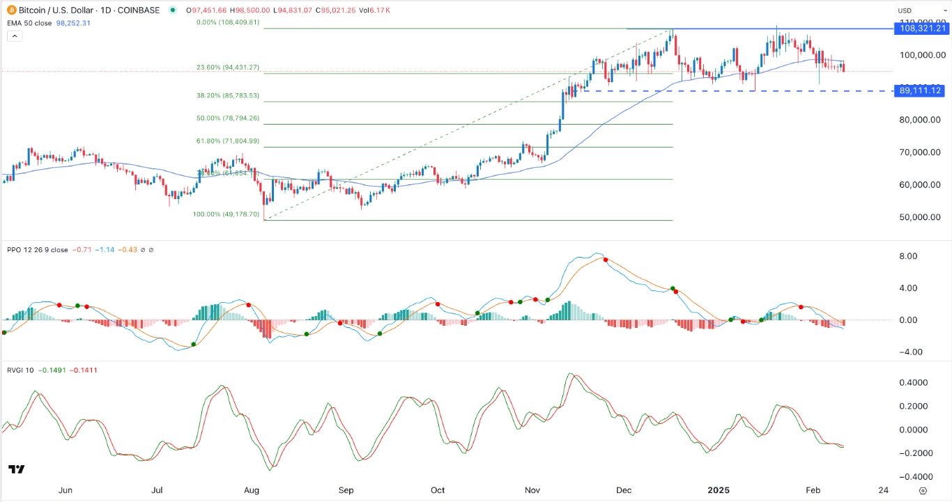 The daily chart shows that the BTC/USD pair topped at 108,320 this year. It has formed a double-top pattern at that level. A double-top pattern is a highly bearish pattern made up of two peaks and a neckline, which, in this case, has moved to $89,111.