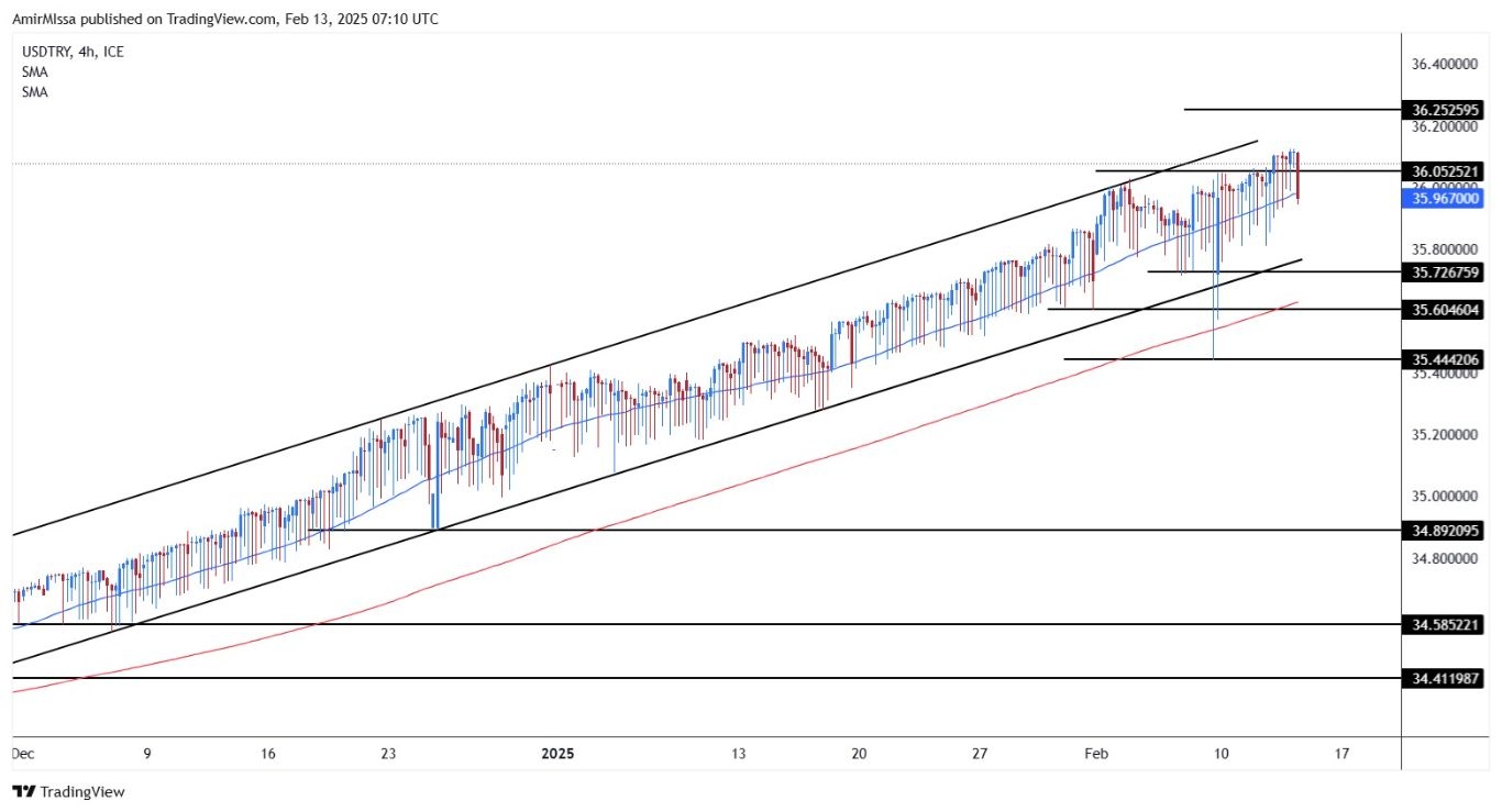 Technically, the USD/TRY pair continues to rise at the same slow pace that the pair has been trading through over the past months. Amid the continued dominance of the negative sentiment towards the Turkish lira's outlook in the medium term, especially with the price continuing to trade within an upward price channel that supports the rise of the pair. At the same time, the pair's movements contixn--xm-6d1dw86k.comnue above the 50 and 200-day moving averages on the four-hour timeframe as well. Currently, every pullback in the pair represents an opportunity to buy again. The pair targets levels of 36.25 lira and 36.55 lira, respectively.