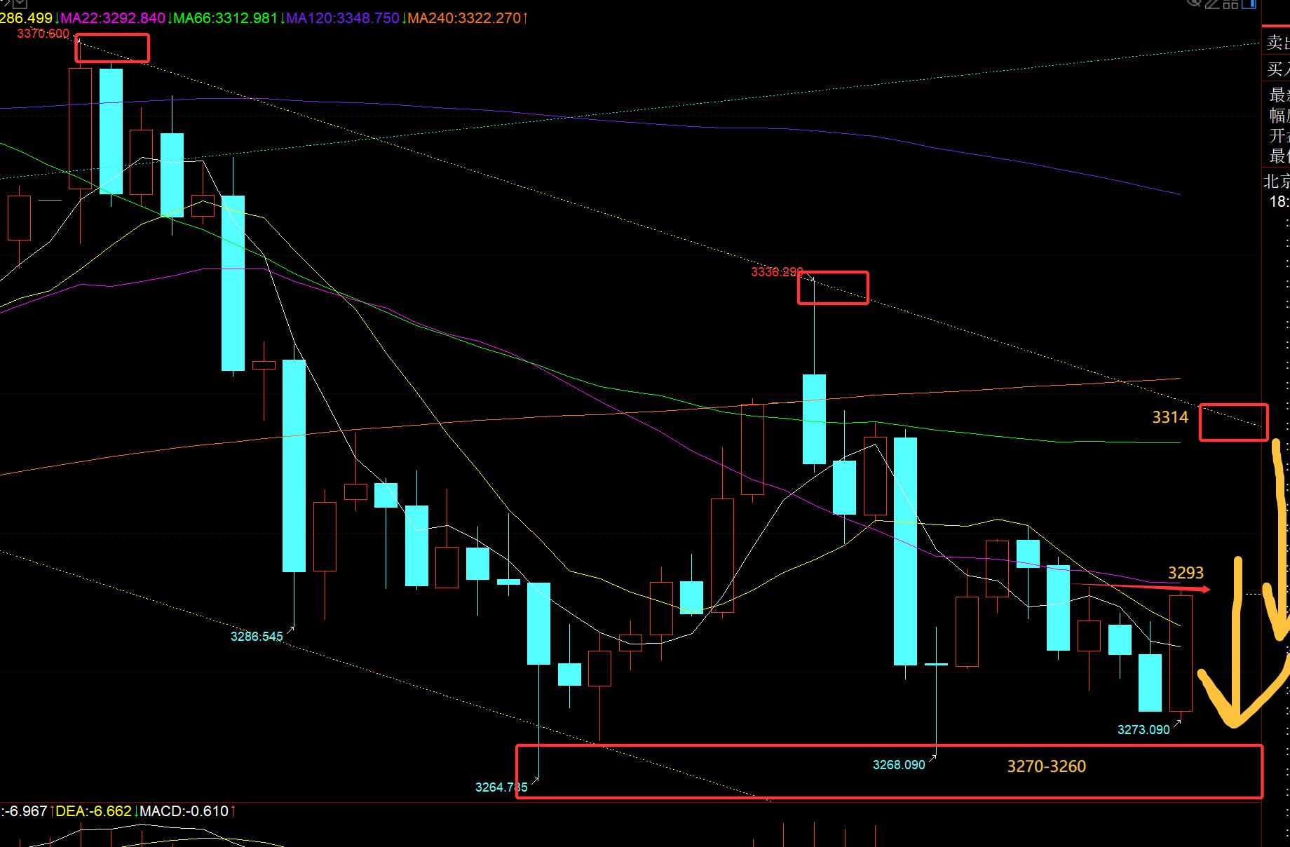 Cuadre, nivel de la hora dorada: asiático, asiático, lo que se detiene de la sesión de la hora de oro: asiático de 33333333. La sesión europea fluctuó de 3300 a 3273, la tendencia general de la sesión asiática y europea fue descendente y débil, por lo que todavía está inclinado a suprimir la valentía esta noche; Pero el punto bajo también se movió lentamente hacia arriba en pequeños pasos, de 3260 a 3264 a 3268 y luego a 3273; Esto puede dar lugar a fluctuaciones repetidas y un barrido repetido del mercado, y es mejor caer lentamente al final, de repente subiendo rápidamente; Al final, de repente cayendo bruscamente; Primero enfóquese en la pista media 3293, que también es una caída en la sesión europea. Si se rompe, concéntrese en 3314. La gran caída negativa también es el punto de presión de la pista superior del canal amarillo. Cuando llega a una caída bajista, caerá cuando caiga. Cuando cae efectivamente 3270-3260, probará el siguiente soporte 3245, 3228, etc.;