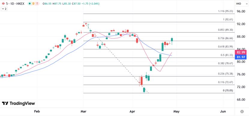 Los ingresos y las ganancias excedieron las expectativas, más el plan de recompra, HSBC apoyó el mercado de valores de Hong Kong por la tarde. Aunque parte del reembolso este mes, el precio de las acciones de HSBC ha aumentado en casi un 15% este año, lo que aún supera con creces el rendimiento promedio de sus pares. Puede continuar prestando atención al objetivo de un alto por encima de HK $ 92 a principios de marzo, pero actualmente rompiendo HK $ 90 es la clave para hacer un seguimiento del rebote técnico. Después del impresionante desempeño, el mercado ha prestado más atención al impacto de la incertidumbre en el entorno macroeconómico en las pérdidas crediticias de HSBC. Los datos muestran que si los aranceles aumentan conducen a la desaceleración del crecimiento económico global, el banco puede reservar otros $ 500 millones en pérdidas.