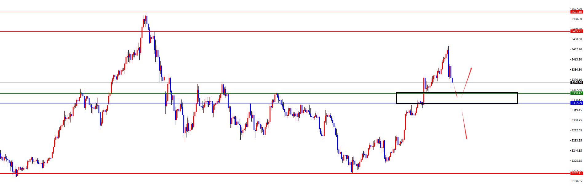 Gold focuses on the 3340-3350 range, and maintains long if it does not break, and turn short in time after breaking down