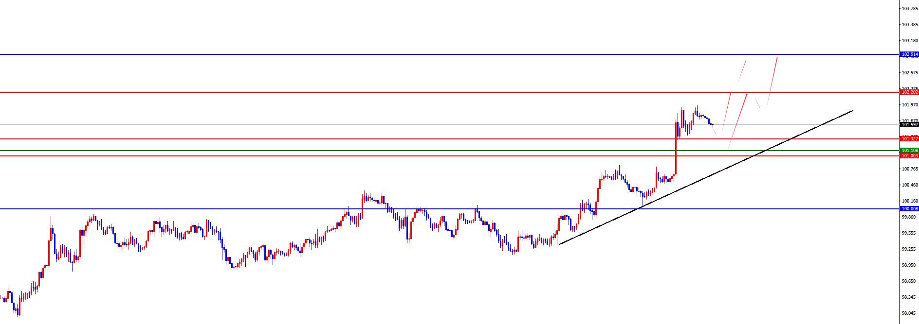 En términos del rendimiento del índice del dólar estadounidense, el índice del dólar estadounidense mostró una tendencia al alza el lunes. El precio del índice del dólar estadounidense aumentó a 101.955 en el día y cayó a 400.4 al más bajo, y finalmente cerró a 101.777. Mirando hacia atrás en el desempeño del mercado el lunes, el precio se abrió directamente a corto plazo durante la sesión de negociación temprana, y luego fluctuó nuevamente en la sesión europea. El precio se cerró fuertemente en un alto nivel el mismo día. Actualmente, el índice de dólar estadounidense está operando de acuerdo con la ruta analizada por el autor, y la atención posterior continuará aún más.