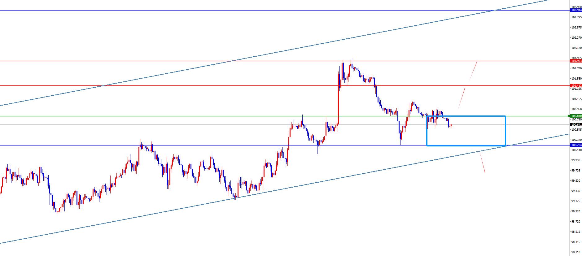 Desde un análisis de múltiples ciclos, el precio se suprime en el área de resistencia 102.90, por lo que desde una perspectiva a mediano plazo, la tendencia del índice del dólar estadounidense será más bajista. Precios a lo largo del tiempo a nivel diarioLa posición clave de soporte está en el área de 100.30, por lo que las bandas posteriores son optimistas. Al mismo tiempo, según el nivel de cuatro horas, la resistencia actual de cuatro horas está en el área de 100.80 con el tiempo. El precio tiende a fluctuar durante la hora, por lo que debe prestar atención al rango de resistencia de cuatro horas de 100.80-100.30, y seguir el diseño después de que se rompe el rango.