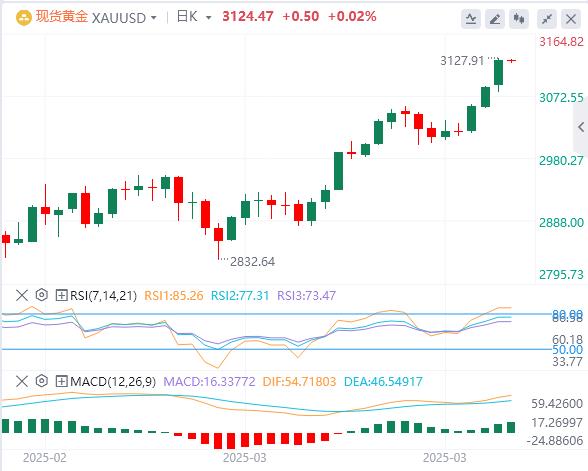 El martes, el martes, el martes, el martes, el martes, el martes 4. A medida que la incertidumbre que rodea los aranceles aumentaron la demanda segura, los precios del oro continuaron teniendo una fuerte tendencia el lunes, aumentando por encima de $ 3100 por onza, e inicialmente se mantuvo por encima de la marca 3120, estableciendo un nuevo máximo histórico de $ 3127.76/oz durante la sesión, cerrando a $ 3123.80/oz, que aumenta el mismo día en que el mercado espera el presidente de los Estados Unidos, que anulara el impuesto de recipimiento de los actos de acuáuicos, y se recubren en el puesto, y el recipimiento de los años acuáticos, y el puesto de recién llegado, y el recipimiento de los accesorios, y el recipimiento de los años acuáticos, y el puesto de referencia se recubieran en el puesto de acuácrata y se recubieran en el puesto de Ayacer. Los aranceles automáticos entrarán en vigencia el 3 de abril. Los inversores también están prestando atención a las perspectivas de la política monetaria de la Reserva Federal. El informe de empleo no agrícola de EE. UU. Se publicará esta semana. Este día de negociación se lanzará. Se lanzarán el PMI de fabricación de ISM de EE. UU. En marzo y los empleos de US Jolts en febrero. Los inversores necesitanPrestar atención.