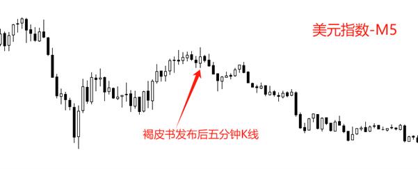 La publicación del Libro Beige no provocó fluctuaciones violentas en el índice del dólar estadounidense. xn--xm-6d1dw86k.como se muestra en el gráfico anterior, cinco minutos después de la publicación del Libro Beige, el índice del dólar estadounidense subió desde el precio de apertura de 98,87 hasta el precio de cierre de 98,79 puntos, un rango de sólo el 0,08%, que es casi insignificante. Cinco minutos después de la publicación del Libro Beige, el índice del dólar estadounidense siguió cayendo, lo que está relacionado con el reciente patrón débil del índice del dólar estadounidense.