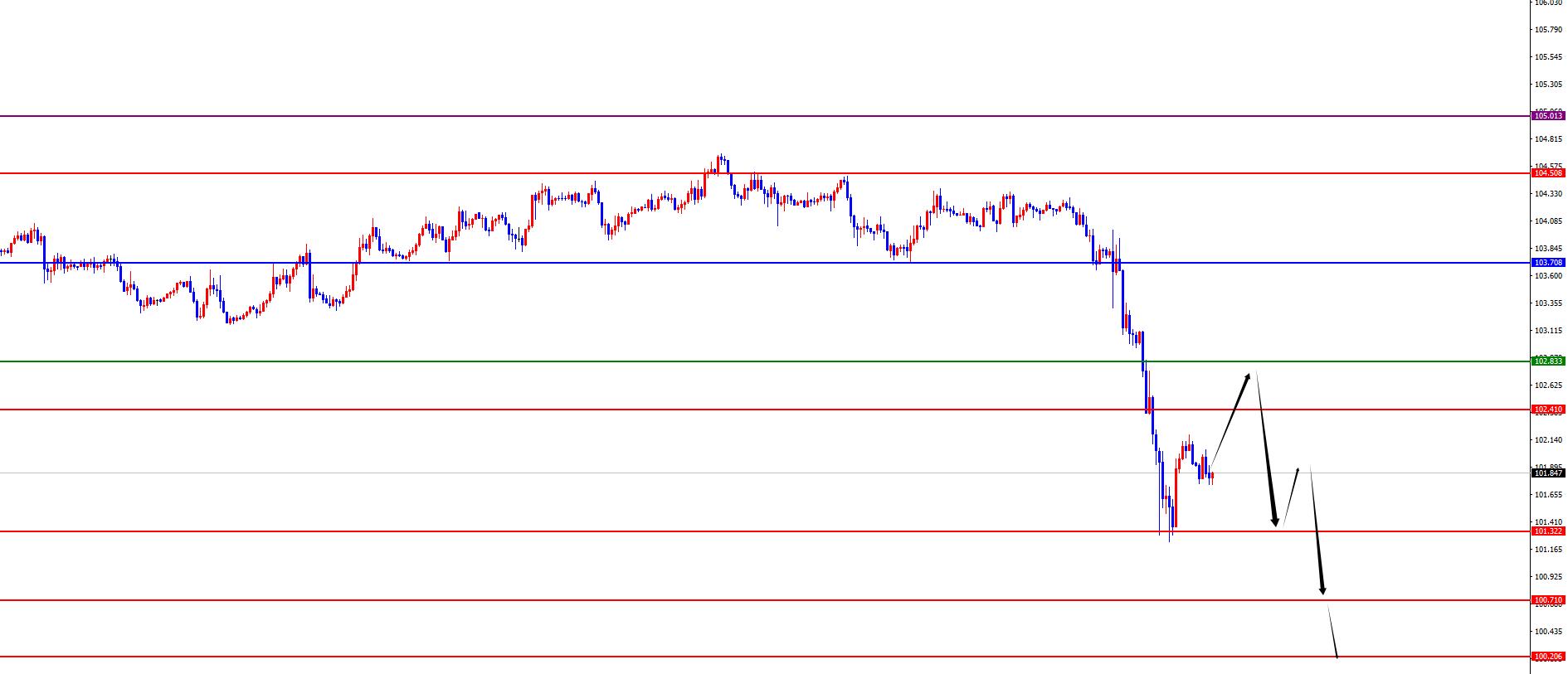 Al realizar un análisis cíclico, seguimos prestando atención a la posición 106.60 en la línea semanal. Esta posición es la clave de la tendencia de la línea media, y el precio es corto en esta posición. Al mismo tiempo, según el nivel diario, debe prestar atención a la posición 103.70, que es un movimiento de la bandaLa clave de la tendencia es que el precio continuará bajo presión por debajo de esta posición, y puede continuar prestando atención más tarde. Al mismo tiempo, prestamos atención temporalmente a la resistencia del área 102.80 y el área de 102.40 durante cuatro horas. El precio está bajo resistencia a múltiples ciclos, por lo que continuaremos prestando atención a una mayor presión en el futuro. Hay signos de ajuste a corto plazo en una hora. Por lo tanto, prestaremos atención a la presión después de que el precio recurra más tarde. Concéntrese en el área 101.30-100.70-100.20 a continuación.