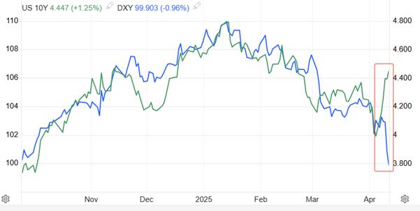 El índice del dólar estadounidense cayó por debajo de la marca de 100, y el rendimiento de los bonos estadounidenses se disparó anormalmente