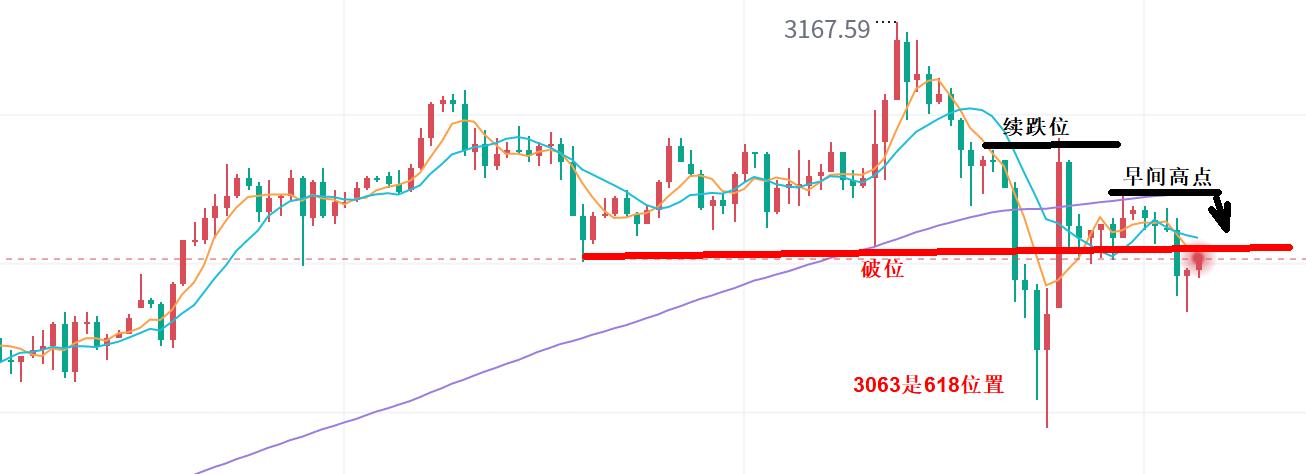 Le prix actuel est au milieu du rebond tôt le matin. Après que le marché américain ait obtenu un fond et rebondi, il a atteint la ligne 3133 hier. 3086 est la plage secondaire de 618.