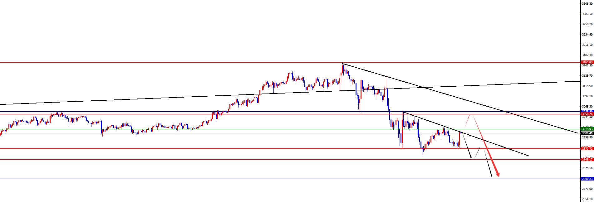 En regardant à nouveau le niveau quotidien, le niveau de résistance est proche de la zone 3050-3055, tandis que le niveau de résistance au niveau de quatre heures à court terme se trouve dans la zone 3015. Étant donné que le prix est actuellement inférieur au niveau de résistance à plusieurs cycles, nous vous recommandons toujours de le traiter avec une approche baissière en termes de stratégies opérationnelles. Dans le même temps, vous devez vous méfier des fluctuations à court terme des prix.