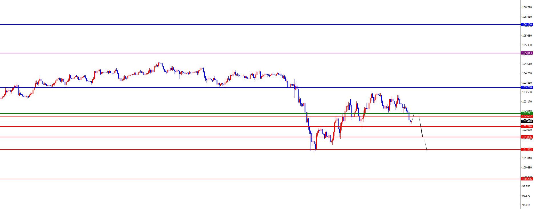 The US dollar index was short in the range of 102.90-103, with a defense of 5 US dollars, and a target of 102.20-101.80