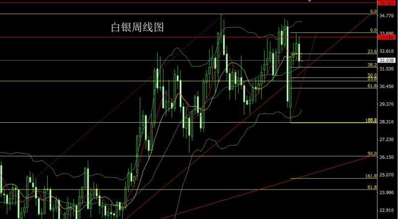 Il mercato dell'argento è stato aperto a 33.047 la scorsa settimana e poi è tornato indietro per primo. Il mercato è aumentato fortemente. La linea settimanale ha raggiunto la posizione più alta di 33,53 e poi è tornata indietro. La linea settimanale era nella posizione più bassa di 31.654 e quindi il mercato si è consolidato. La linea settimanale ha finalmente chiuso a 32,004 e quindi il mercato ha chiuso con una grande linea negativa con un'ombra superiore leggermente più lunga dell'ombra inferiore. Dopo la fine di questo modello, la linea settimanale è stata negativa e chiusa con una breve perdita di arresto di 32,55 questa settimana a 32,35. L'obiettivo di seguito è 31,9 e 31.65 e 31.35.