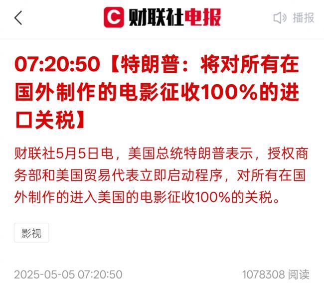 Just yesterday, Trump announced that he would impose 100% tariffs on non-US films, claiming: "This is a joint action of other countries, and thus poses a national security threat."