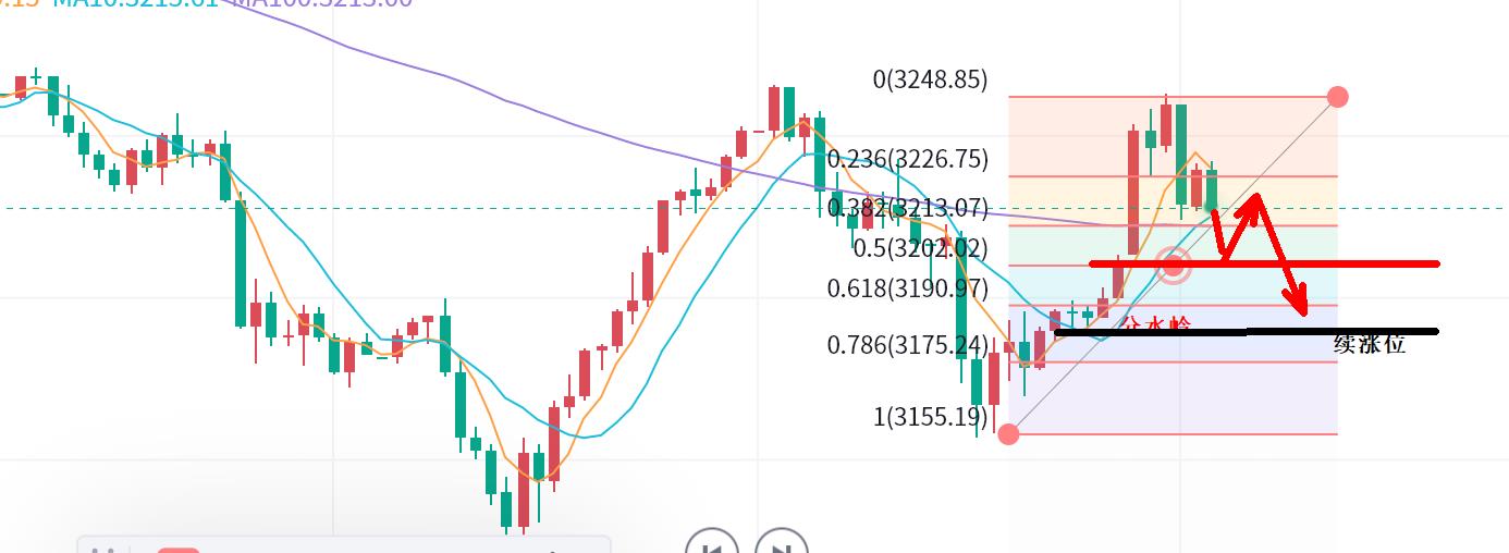 2, spartiacque, dopo essere salito al mattino, spartiacque 3250. Lo spartiacque sotto è 3191, che è un rimbalzo di 618, rompendo 618 al giorno e il declino continua.
