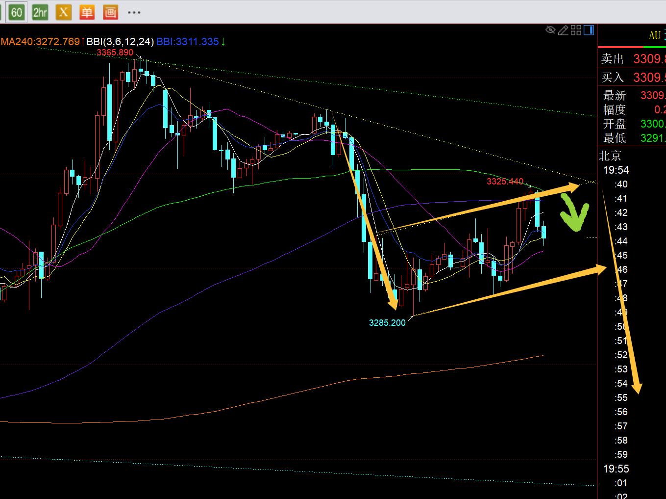 terzo, oro a livello orario: dal livello di orario dell'oro: è stato il livello di orario oro. Finché questo modello è efficace, rispetto allo stesso declino, può essere almeno puntare a 3250-3240; Ma c'è un prerequisito, cioè non può rompere la traccia superiore del canale di consolidamento giallo, quindi la bandiera verso il basso non sarà valida; Pertanto, stasera, affidati alla traccia superiore 3323 su e giù per oscillare e guardare la soppressione, la pista inferiore 3296-3300 presta attenzione al sostegno, oggi il mercato europeo fluttua e in questo momento gli Stati Uniti si ritireranno prima del mercato. Trend;