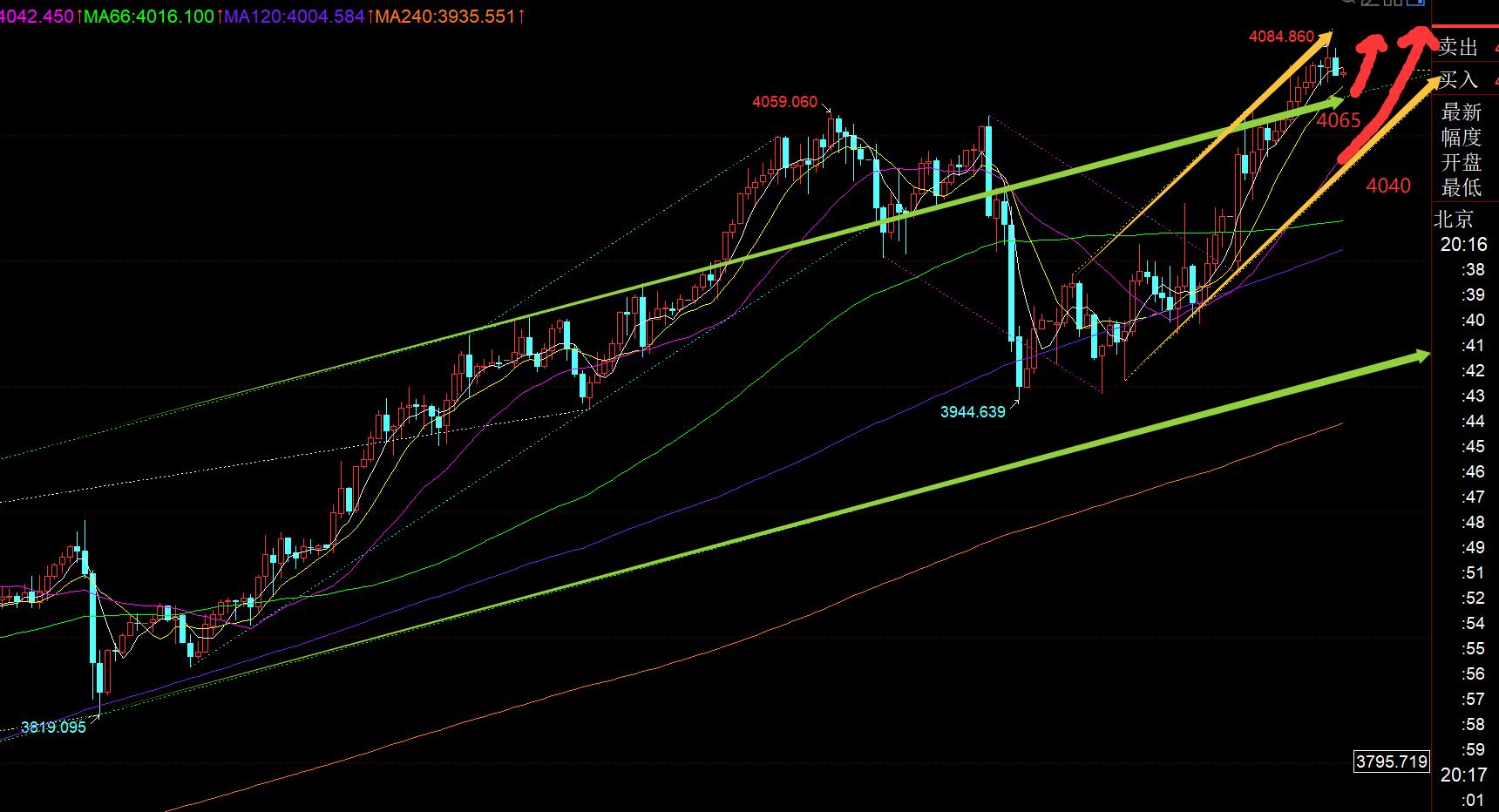 Terzo, il livello della linea dell'ora d'oro: al mattino presto, è rapidamente arretrato su 3995 e poi è aumentato rapidamente. Dopo aver superato 4010, ha chiuso a 4060, colpito dal sole. Ci è voluta un'ora per colpire nel segno; poi, dopo la giornata, ha continuato ad essere rialzista tornando indietro sul 4020, e dopo le 10, ha continuato ad essere rialzista facendo affidamento sulla media mobile a 5 giorni di 4045, perché si basava sulla media mobile a 5 giorni per salire. Questo è un tipico esempio. Un forte movimento unilaterale intraday; pertanto, anche la svolta rialzista di 4061 è stata un'imboscata in anticipo. La posizione 4060 è stata sotto pressione due volte la scorsa settimana ed è stata soppressa due volte questa mattina. È facile continuare a salire se sfonda di nuovo, e alla fine riesce a raggiungere l'obiettivo, avvicinandosi al target 4080; quindi, dopo aver superato il 4060, ci sarà un'onda di rialzo e il ritracciamento confermerà che si tratta della posizione superiore e inferiore. 4060 è ancora una volta un'opportunità rialzista e il mercato europeo raggiunge nuovamente l'obiettivo di 40 e 80; per stasera, i mercati asiatico ed europeo sono saliti xn--xm-6d1dw86k.completamente, e il mercato statunitense si è ritirato per un'ondata e ha un secondo rialzo, ma dobbiamo essere cauti, perché oggi è salito di 90 metri dal basso all'alto, che è il limite di 100 metri per la giornata, quindi cerca di non inseguire l'aumento, fai un passo indietro al primo supporto e concentrati sulla linea 4065. Nella figura, la traccia superiore del canale verde nella fase iniziale conferma ancora una volta il livello di supporto, seguita dalla traccia centrale, anch'essa vicina al canale giallo. Sul tracciato inferiore di 4040, spero di fare un ulteriore passo indietro per fare spazio ad un altro rialzo nel corso della giornata; in caso contrario, il livello elevato continuerà a muoversi fortemente lateralmente, e continuerà a salire domani; l'obiettivo di resistenza sarà 4090-4100, che è la posizione estrema oggi; ricorda, il principio di essere solo lunghi ma non corti, non guardare facilmente al declino, ogni giorno sarà testimone di movimenti estremi rari nella storia;
