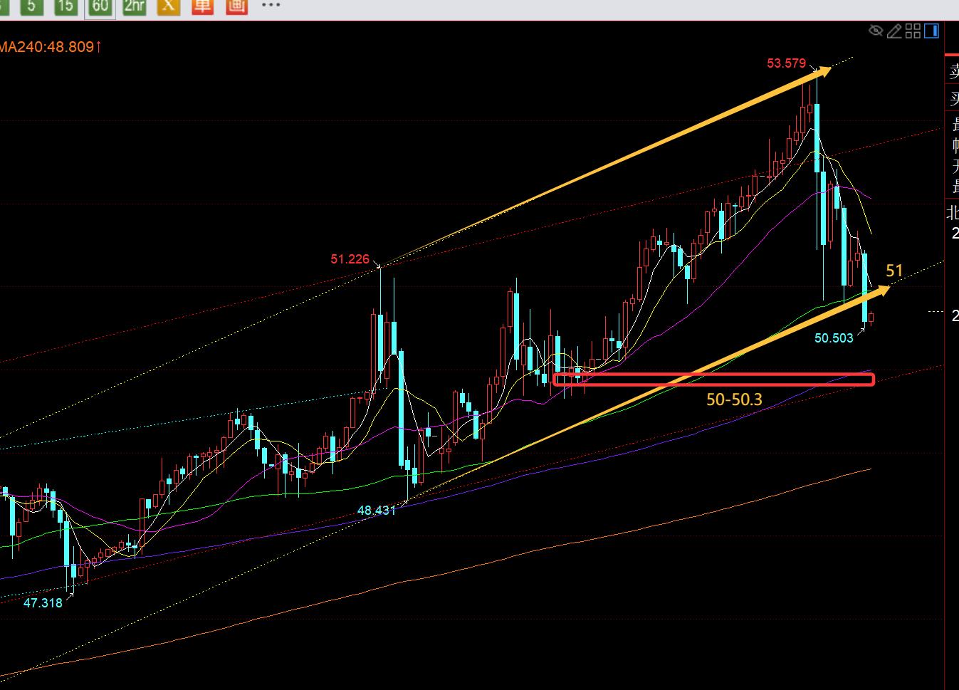 Secondo, argento: al mattino, si è affidato al supporto orario a metà percorso 50 per essere rialzista. Il prezzo è leggermente peggiorato di 0,1 ed è salito a 51,7 in un'ondata. Il mercato europeo è sceso a 50,5 e ha continuato a salire, e il prezzo era giusto. Sul posto, il mercato statunitense ha continuato a salire, raggiungendo la linea 52,4 il più in alto possibile, che è anche molto forte;