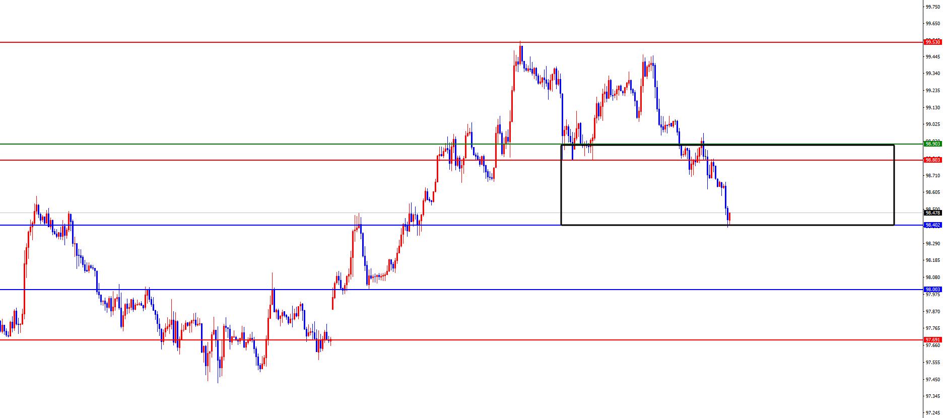 L'indice statunitense è caduto sotto pressione xn--xm-6d1dw86k.come previsto e l'attenzione a breve termine è concentrata su 98Intervallo .40-98.90