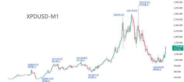 Da marzo 2022 ad agosto 2024, il prezzo del palladio ha continuato a crollare dal suo punto più alto, fino a un minimo di 809 dollari USA, con un calo cumulativo massimo del 76%, che ha scioccato il mercato. A causa del prezzo elevato del palladio, i produttori hanno scelto allo stesso tempo il palladio più economico xn--xm-6d1dw86k.come materiale principale per i convertitori catalitici, il che ha portato ad un forte calo della domanda di palladio. Inoltre, anche lo spostamento del mercato automobilistico dai veicoli a carburante ai veicoli a nuova energia ha indebolito la domanda di palladio. Una xn--xm-6d1dw86k.combinazione di fattori ha contribuito al forte calo dei prezzi del palladio dal 2022 al 2024.