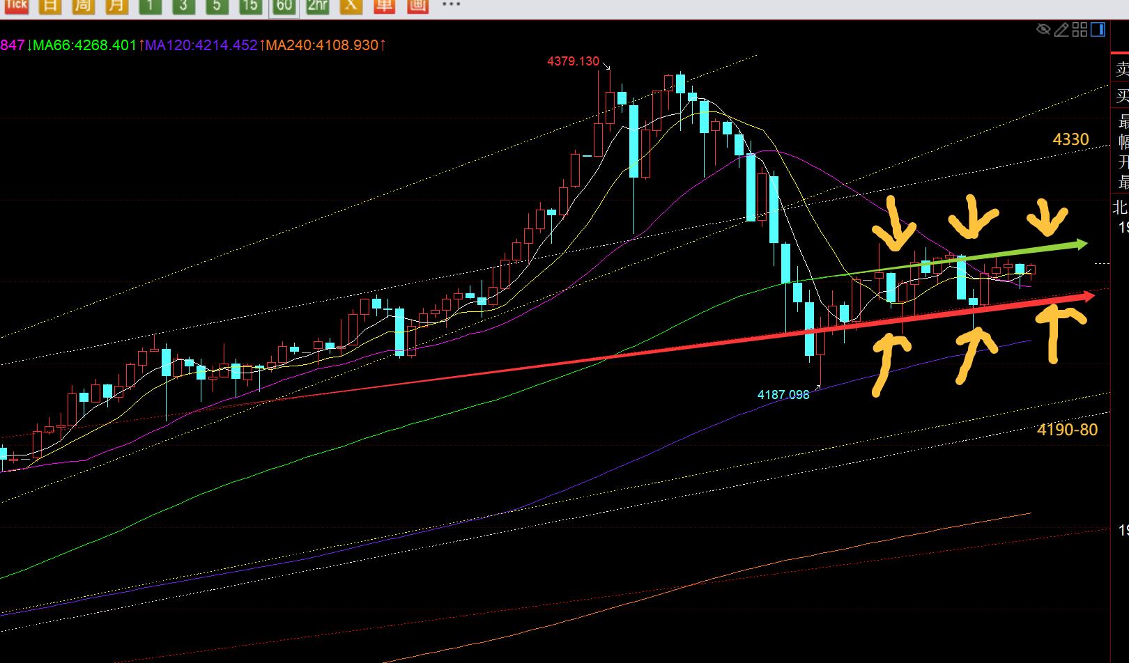 Terzo, il livello orario d'oro: in generale, dopo un brusco calo durante la notte, il giorno successivo cercherete massimi di rimbalzo mattutino o divisi livelli di resistenza, o mid-rail, grande Yin e altre resistenze per provare se continuare il declino, soprattutto se ti rialzi bruscamente all'inizio della mattina, è molto facile Non ha continuato e è caduto; è salito presto ed è ricaduto sulla linea 4273,5 sotto pressione. La pressione 4277 menzionata nel video di Zhou era leggermente peggiore. È sceso a 4218 per la prima volta ed è rimbalzato prima di testare la linea 4270. 4218 era il 618 supporto divisorio; era sotto pressione alle 42 del pomeriggio. 70 ha anche soppresso un'onda vicino alla corsia centrale, è scesa a 4221, per poi stabilizzarsi e rimbalzare a 4265; il prezzo andava avanti e indietro, apparentemente caotico, ma in realtà potrebbe seguire una disposizione a triangolo convergente, con i punti alti che si spostavano gradualmente verso il basso e i punti bassi che aumentavano gradualmente lentamente, che può anche essere considerato xn--xm-6d1dw86k.come una disposizione di canali paralleli, la resistenza Feng Shui Ridge è 4274, il supporto Feng Shui Ridge è intorno a 4220, operando entro un raggio di 50 metri; inoltre, in questo tipo di mercato veloce su e giù a breve termine, se esiti per un momento, non sarai in grado di entrare nei punti alti e bassi relativamente buoni, oppure sarai avido quando avrai profitti, quindi tornerai alla tua posizione originale, oppure lo farai Per proteggerti, spostarti verso il basso e difenderti prima di raggiungere il tuo spazio target originale; pertanto, puoi chiudere solo quando va bene, ma alla fine romperà definitivamente l'equilibrio e andrà in una direzione per sfondare o espandere l'intervallo di shock. È necessario prestare attenzione alla linea di resistenza della media mobile a 66 giorni 4268 e al punto massimo della placca asiatica 4274. Se queste due resistenze vengono rotte verso l'alto, ed è dopo la continua svolta di Yang o la svolta di Dayang di 66 giorni, allora puoi considerare di fare un passo indietro per seguire la tendenza rialzista. Puoi almeno creare un'ondata di sub-massimi, vedi 618 che divide la resistenza 4305, o anche al di sotto del punto di contropressione derivato dal canale precedente 4330; al contrario, se non si riesce a superare questi due livelli di resistenza, potrebbe esserci un'ondata di pressione al ribasso, in particolare la linea di tendenza rossa nel grafico della rottura effettiva corrisponde all'attuale supporto di 4240. Richiede inoltre condizioni negative continue o xn--xm-6d1dw86k.completamente negative per essere efficaci. Quindi puoi testare l'intervallo del minimo di venerdì scorso di 4190-4185. Guarda i suoi guadagni e le sue perdite; ovviamente, fintanto che osa scendere ulteriormente, il macd divergerà dal fondo e, quando si stabilizzerà, ci sarà un punto rialzista di fascia bassa relativamente buono nelle prospettive di mercato; la tendenza al rialzo non cambierà e gli aggiustamenti e le correzioni al ribasso sono tutti preparativi affinché le prospettive del mercato stabiliscano ulteriormente nuovi massimi storici;