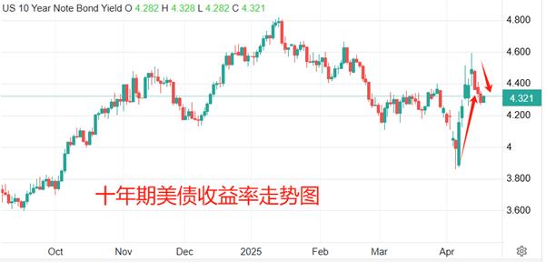 U.S. Le obbligazioni sono la prima scelta per i prodotti che possono xn--xm-6d1dw86k.competere con l'oro per le proprietà per la cassa. Dal 7 all'11 aprile, il rendimento delle obbligazioni del Tesoro statunitensi a 10 anni è aumentato rapidamente, dal 3,86% al 4,592%, con un aumento di oltre 70 punti base. Mentre i rendimenti delle obbligazioni più elevati significano che il mercato sta vendendo, i prezzi delle obbligazioni sono più bassi. Tuttavia, per il mercato primario, i rendimenti più elevati possono attirare più fondi dal mercato dell'oro al mercato obbligazionario, sopprimendo indirettamente l'ascesa dell'oro. Tuttavia, negli ultimi quattro giorni di negoziazione, i rendimenti del Tesoro degli Stati Uniti hanno continuato a ritirarsi, con l'ultimo valore del 4,319%, un calo di 27 punti base. Ufficialmente durante questo periodo, il prezzo dell'oro ha approfittato della situazione e è salito rapidamente.