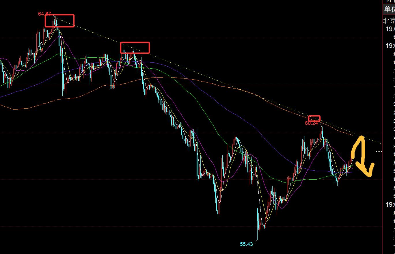 두 번째는 원유의 측면에서 다음과 같이, 매일 10 개의 움직이는 평균 압력 신호가 나타나면 시간별 라인이 지속적으로 미끄러 져 중간 트랙 아래로 떨어질 것이며 59.2는 58의 물결에 도달 할 것입니다.