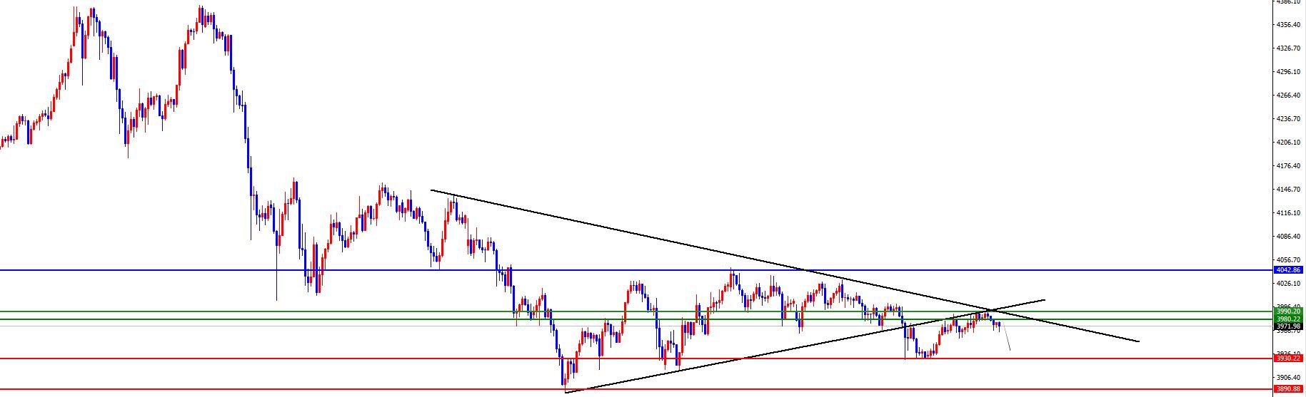 핵심 분수령은 3980-3990입니다. 반전 신호가 나타나기 전에 가격은 변동하고 압력을 받게 됩니다.