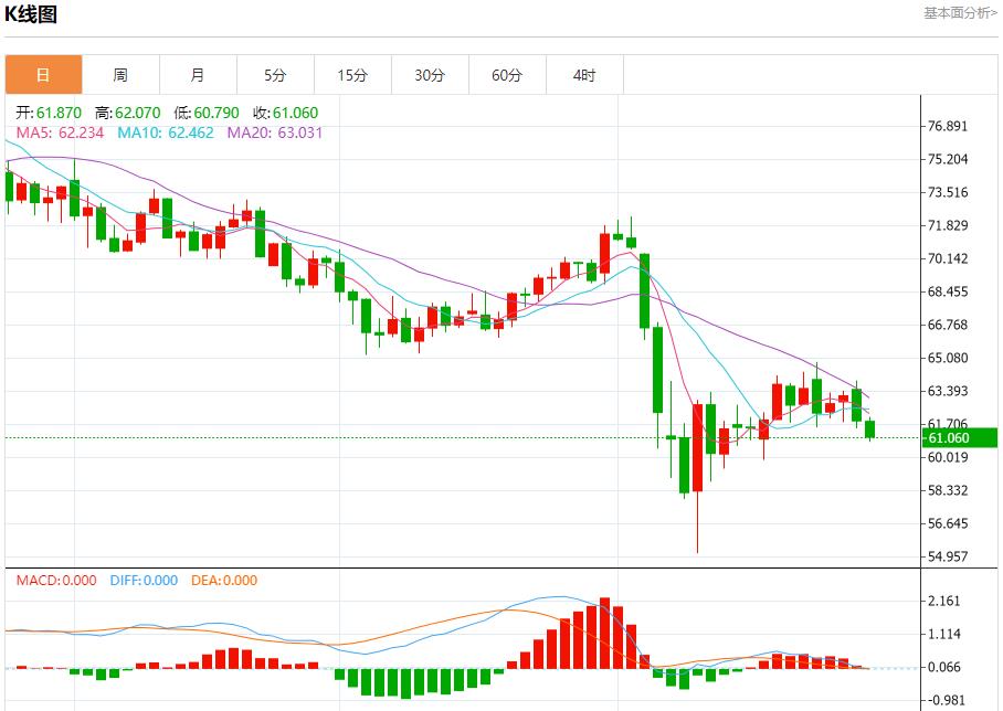 Pasar minyak mentah: Sehingga 20:20 Beijing, minyak A.S. jatuh dan kini pada 61.060, penurunan sebanyak 1.60%. Sebelum Bursa Saham New York, minyak mentah jatuh di peringkat intraday, melepasi tahap sokongan $ 61.50, mengesahkan dominasi kekuatan penjual, sementara tekanan negatif yang berterusan disebabkan oleh perdagangannya di bawah EMA50 dan pergerakannya di sepanjang garis kecenderungan menurun secara jangka pendek.