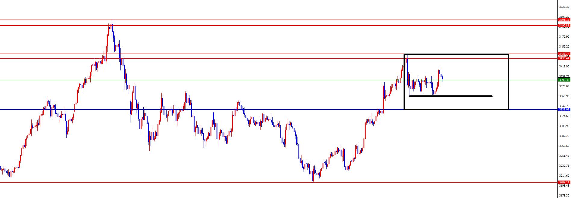 Gold is temporarily paying attention to the 3337-3434.7 range oscillations, with the middle watershed at 3389
