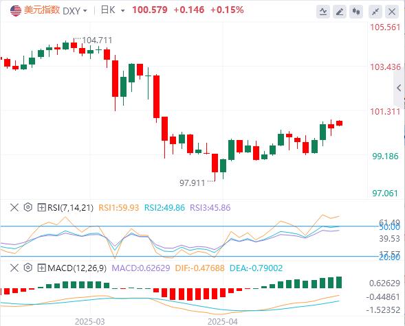 Indeks dolar: Pada masa akhbar, indeks dolar AS berlegar sekitar 100.57. Dolar dilakukan dengan kuat minggu lalu, dengan indeks dolar merakam keuntungan mingguan, terutamanya disebabkan oleh kesimpulan perjanjian perdagangan A.S.-U.K. dan harapan optimis pasaran untuk perbincangan antara China dan Amerika Syarikat. Pada awal minggu ini, dolar AS meningkat dengan mantap terhadap mata wang utama, terutamanya terhadap Yen Jepun dan Franc Swiss. Walau bagaimanapun, dolar menyaksikan sedikit pembetulan pada hari Jumaat, turun 0.01% terhadap Franc Swiss kepada 0.83150 dan 0.39% berbanding yen kepada 145.35.5. Secara teknikal, jika indeks dolar A.S. ditutup di bawah tahap sokongan 100.20-100.40, ia akan bergerak ke arah 99.81 daripada 50mA.