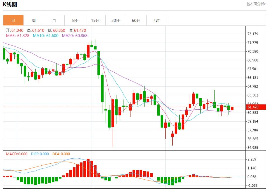Pasar minyak mentah: Sehingga 20:20 Beijing, minyak A.S. meningkat, kini pada 61.500, peningkatan 1.02%. Sebelum Bursa Saham New York, harga (minyak mentah) meningkat dalam perdagangan intraday baru -baru ini, disokong oleh isyarat positif pada (RSI), kerana perdagangan mereka berada di bawah EMA50, perdagangannya mengikuti garis trend pasaran utama Bear Major, jadi terdapat tekanan negatif yang berterusan.