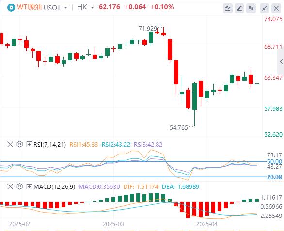 Terdahulu, Presiden AS Trump berkata beliau tidak berhasrat untuk membakar Pengerusi Rizab Persekutuan dan membayangkan bahawa ia telah membuat kemajuan mengenai isu -isu tarif, selera pelabur untuk aset berisiko telah bertambah baik, dolar AS dan saham AS pulih, menekan harga emas. Selepas harga emas disekat pada markah 3500, lebih banyak penyelesaian keuntungan jangka pendek juga menyeret harga emas. Hari dagangan ini akan dikeluarkan pada kadar bulanan awal pesanan barangan tahan lama di Amerika Syarikat pada bulan Mac dan jumlah tuntutan pengangguran awal di Amerika Syarikat untuk minggu yang berakhir pada 19 April. Pelabur perlu memberi perhatian kepadanya. Di samping itu, kita perlu terus memberi perhatian kepada berita yang berkaitan dengan situasi perdagangan antarabangsa dan keadaan geopolitik.2) Analisis trend pasaran minyak mentah