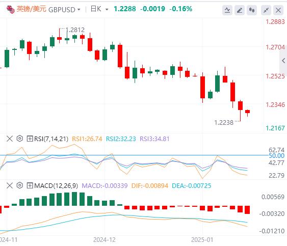 英镑/美元周四跌至2023年11月以来的最低水平,低于1.2250,因英国国债的抛售继续。随着国债收益率回调走低,该货币对在当天后半段设法抹去部分日内跌幅。周五欧洲早盘,英镑/美元走势疲软,交投于1.2300下方的跌势中。