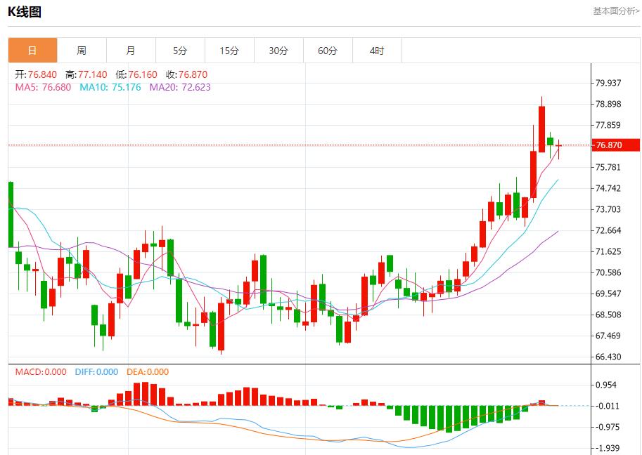 原油市场:截止北京时间21:26,美油上涨,现报76.880,涨幅0.69%。纽市盘前,原油价格提供了积极的交易,以测试第一个关键阻力78.25美元,并开始熊市反弹,以攻击77.45美元的头肩顶形态的颈线,等待确认突破,以开辟向我们的主要预期目标75.60美元反弹的道路。