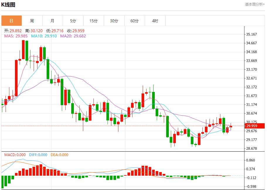 现货白银:截止北京时间21:26,现货白银上涨,现报29.954,涨幅0.26%。纽市盘前,白银价格成功突破29.90美元水平,并试图保持在该水平之上,以支持在今天剩余时间内继续看涨趋势的预期,实现我们主要等待目标30.63美元的道路是开放的,提醒您牛市的持续取决于29.63美元以上的价格稳定性。