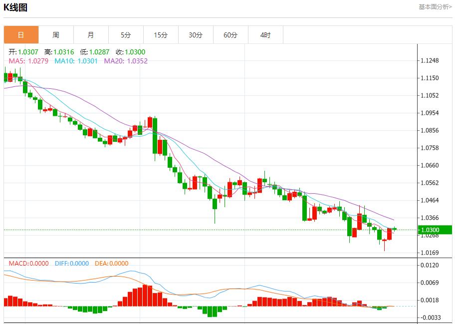 欧元/美元:截止北京时间21:26,欧元/美元下跌,现报1.0301,跌幅0.06%。纽市盘前,自早上以来,欧元兑美元的价格一直在EMA50附近徘徊,只要价格低于1.0325美元,我们的看跌观点将在今天仍然有效,这是由随机指标清楚显示的超买信号支持的,提醒你我们的目标是从突破1.0220美元开始,以确认打开通往1.0100美元的道路。