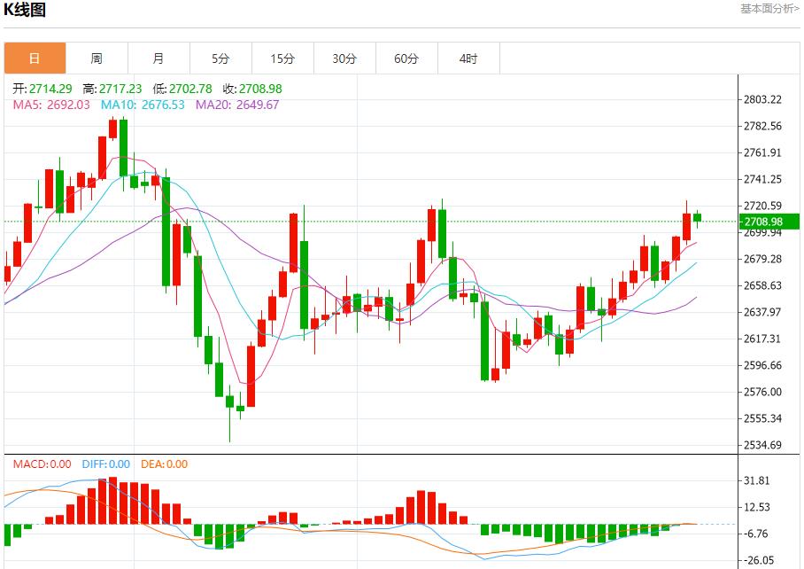 现货黄金:截止北京时间21:26,现货黄金下跌,现报2709.63,跌幅0.21%。纽市盘前,黄金价格显示出一些轻微的看跌倾向,可能测试2700.00美元的障碍,等待获得推动价格恢复主牛市的积极动机,其目标是从超过2730.00美元开始,以确认打开通往2790.00美元的道路。